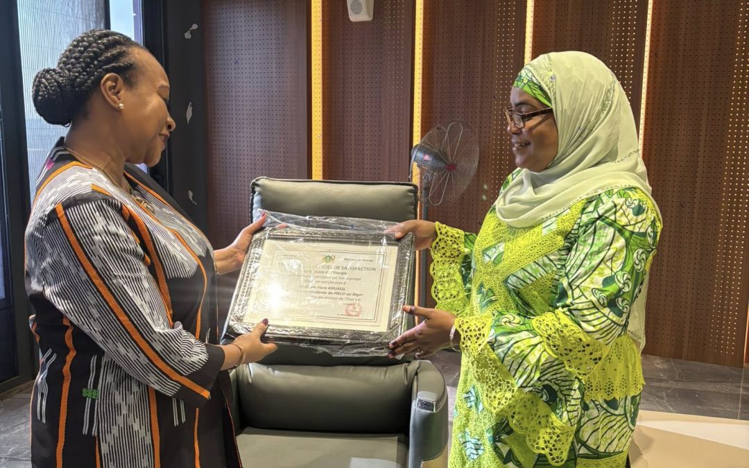 À travers ce geste, la Ministre a salué la contribution du PNUD dans l’accompagnement du Niger dans la mise en œuvre de ses politiques énergétiques et le renforcement de ses capacités institutionnelles.